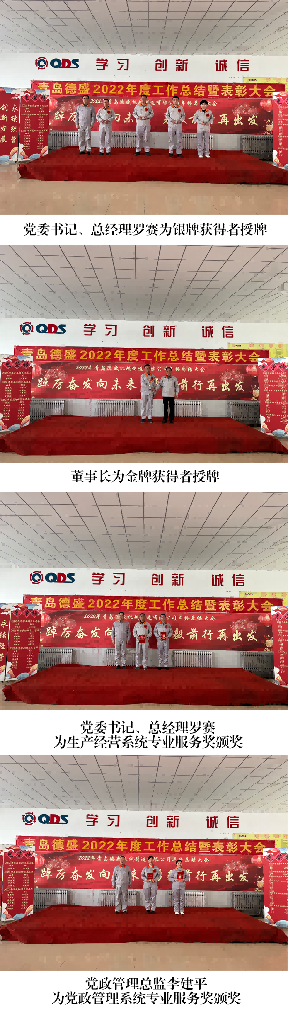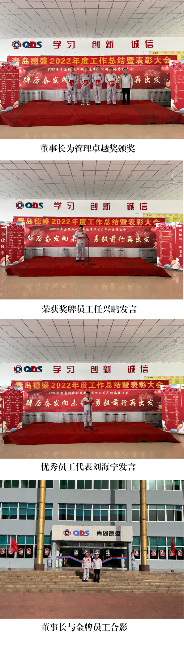 大會(huì)舉行了隆重的頒獎(jiǎng)儀式,為劉書(shū)亮等4 名員工頒發(fā)“專業(yè)服 務(wù)獎(jiǎng)”;為王杰頒發(fā)“市場(chǎng)先鋒獎(jiǎng)”;為李文頒發(fā)“技術(shù)創(chuàng)新獎(jiǎng)”;為 王佳麗等7 名員工頒發(fā)“工匠精神獎(jiǎng)”;為任立剛等 7 名員工頒發(fā)“優(yōu) 秀質(zhì)量獎(jiǎng)”;為劉海寧等4 名員工頒發(fā)“管理卓越獎(jiǎng)”;為入職工作滿 10 年的李新作等6 名員工頒發(fā)銅牌;為入職工作滿 20 年的任興鵬等 4 名員工頒發(fā)銀牌;為入職工作滿30 年的曹明睿頒發(fā)金牌。榮獲獎(jiǎng) 牌代表任興鵬、優(yōu)秀員工代表劉海寧分別發(fā)言,他們感謝公司的培養(yǎng)、 領(lǐng)導(dǎo)的信任和同事們的支持,并表示2023 年一定立足本職崗位,將 董事長(zhǎng)提出的“調(diào)結(jié)構(gòu)、促重點(diǎn)、穩(wěn)投入、占高端、聚焦發(fā)展”的工 作總基調(diào)與本職工作相結(jié)合,不斷創(chuàng)新工作思路,努力提高工作能力 和工作水平,力求將各項(xiàng)工作做得更加扎實(shí)、更加到位,為公司的發(fā) 展做出新的貢獻(xiàn)!