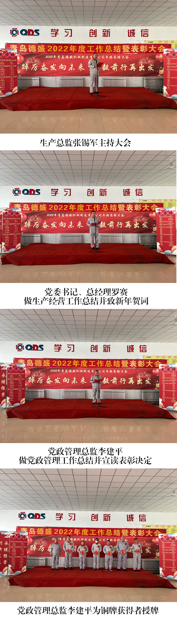 2023 年 1 月 19 日上午,公司 2022 年度工作總結(jié)暨表彰大會(huì)隆 重召開(kāi),生產(chǎn)總監(jiān)張錫軍同志主持大會(huì),黨委書(shū)記、總經(jīng)理羅賽同志 做《2022 年度生產(chǎn)經(jīng)營(yíng)工作總結(jié)》并致新年賀詞,黨政管理總監(jiān)李 建平同志做《2022 年度黨政管理工作總結(jié)》并宣讀《關(guān)于表彰 2022 年度優(yōu)秀員工和頒發(fā)金銀銅牌的決定》。